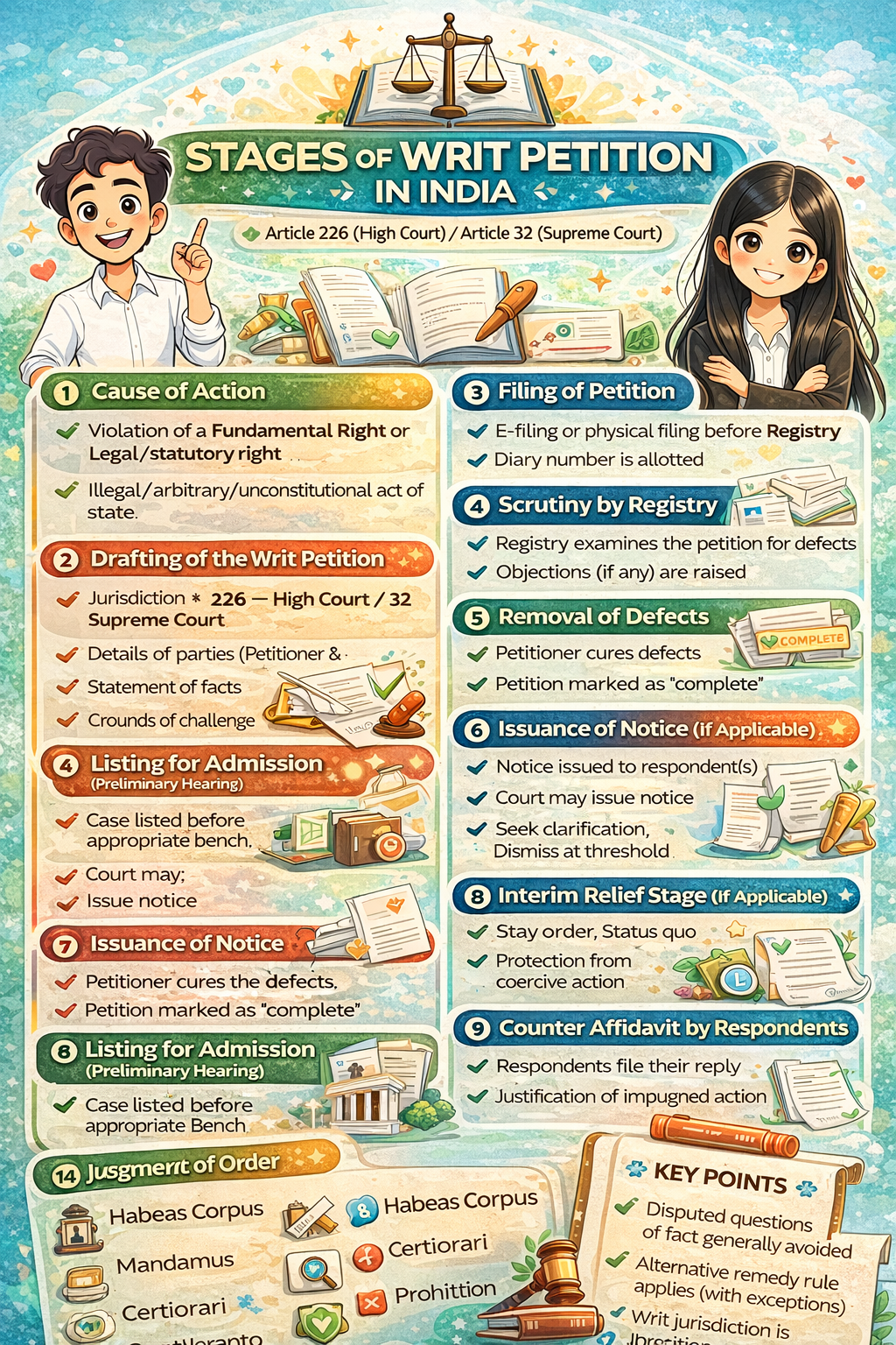 - Jurisdiction (Article 226 – High Court / 32 – Supreme Court)